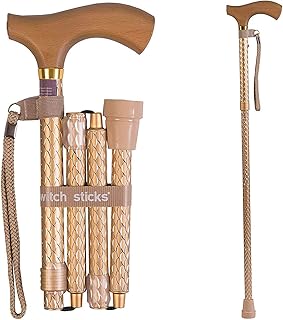 Switch Sticks Designer Folding Walking Stick, Folding Walking Cane, Collapsible Walking Stick, Adjustable From 32 to 37 Inches, Engraved Pearl Gold by Switch Sticks [並行輸入品]