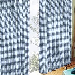 [カーテンくれない]ギンガムチェック遮光カーテン【節電 断熱対策】キュートなチェック柄遮光 ドレープ カーテン 形態安定加工 :幅100×丈200cm×2枚 色:ブルー