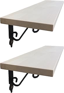 日常の空間をお洒落に可愛く 飾り棚 壁掛け アイアン ブラケット アンティーク ワイドシェルフ ウォール ラック 2点セット (ホワイト 45cm)