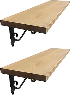 日常の空間をお洒落に可愛く 飾り棚 壁掛け アイアン ブラケット アンティーク ワイド シェルフ ウォール ラック 2点セット (オーク(60cm))