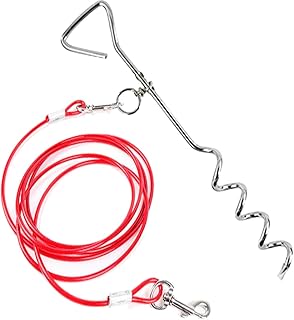 [S.fields.inc] ドッグポール ワイヤー リードセット 埋め込み 係留ステッキ グラウンドアンカー 犬 散歩 公園 (レッド)