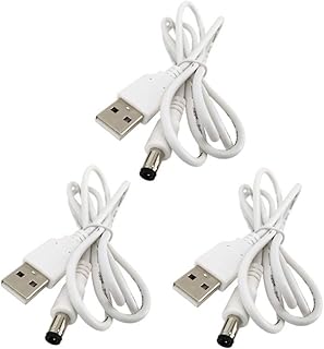 dzydzr 3pcs拡張子ケーブルUSB to DCケーブル – 5 V USB 2.0ポートオスto DC 5 Vオス5.5 MM x 2.1 MM電源コードホワイト100 cm (3.3 Ft)