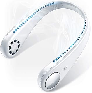 【良い生活ing】首掛け扇風機 携帯扇風機 ポータブルファン ハンディー 手持ち ミニ 静音 羽なし 軽量 USB充電式 便携式 ネッククーラー イヤホンデザイン 小型 (ホワイト)