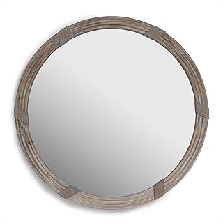 Barnyard Designs 31インチ 装飾ラウンド壁掛けミラー 素朴な農家壁装飾 自宅 バスルーム 洗面台用 大きなホワイトウォッシュウッドフレーム 円形ミラー