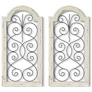 Barnyard Designs 素朴な木と金属製の壁装飾 大きな装飾錬鉄スクロール壁アート ヴィンテージファームハウス ホームデコ 16インチ x 32インチ (2個セット)