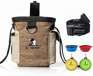 KUD 犬用 訓練バッグ 多機能 犬おやつバッグ 犬用 ウエストポーチ 折りたたみ式のボウルが付き 散歩用 訓練用 外出用 ペット 訓練用品(16.5X14X8cm, 褐色)