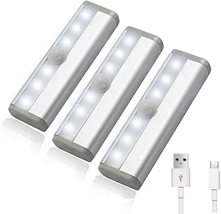 TopYart 人感センサーライト USB充電式 3モード 高輝度 6LED 省エネ 自動点灯・消灯 配線不要 マグネット 簡単設置 クローゼット キッチン 足元灯 玄関 廊下 階段 夜間照明 昼白色